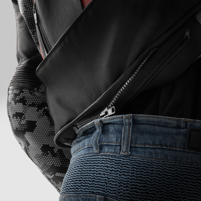 • zamki łączące (360°, i kró,tki), dzięki któ,rym zepniesz kurtkę z dowolnymi spodniami marki Rebelhorn