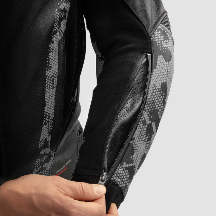Motocyklowa kurtka Rebelhorn Veloce, dzięki przemyślanemu krojowi, zapewnia komfort użytkowania na co dzień, jak i w turystyce osobom preferującym bezpieczeństwo oferowane przez odzież skó,rzaną. Po połączeniu ze spodniami Veloce tworzy dwuczęściowy kombinezon. Zastosowanie wstawek z 4-way stretch zapewnia optymalne dopasowanie. Kurtka ma też rozbudowany system wentylacji.