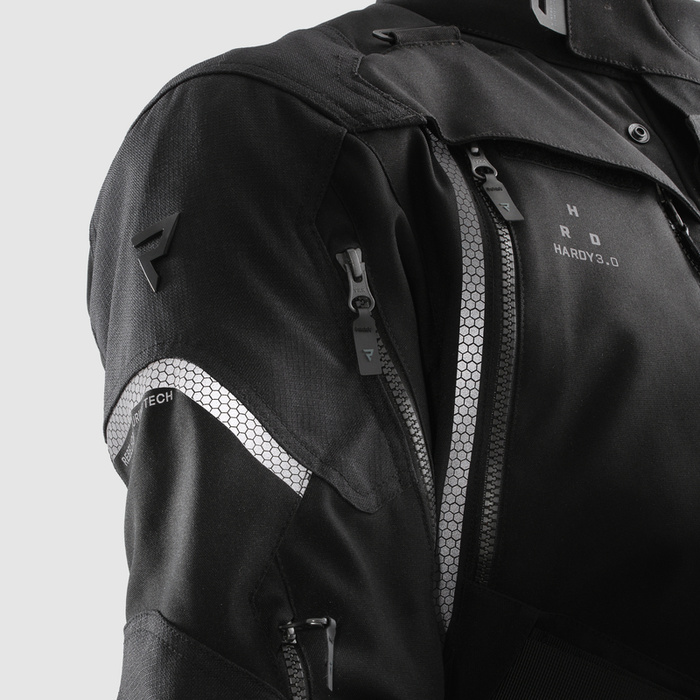 Rebelhorn Hardy 3.0 jest wyposażona w innowacyjną membranę HydraShield™ PRO, którą można założyć na wierzch kurtki lub nosić pod spodem. Dodatkowo, elastyczny materiał HyperStretch® zwiększa ergonomię, a system magnetycznego zapięcia umożliwia wygodne otwieranie wentylacji podczas jazdy.