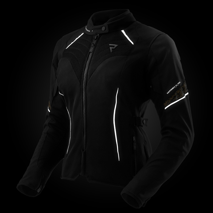 Kurtka JAX LADY jest wyposażona w zestaw ochraniaczy Armanox CE-level 2, w tym ochraniacz pleców. Spełnia wymogi drugiego poziomu ochrony, który obejmuje całą kurtkę (AA).