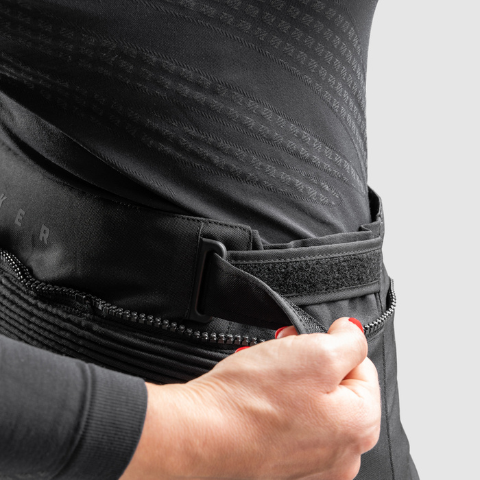 - Zamki łączące typu 8VST: Dwa rodzaje zamków (360 oraz krótki) do łączenia spodni z kurtką,