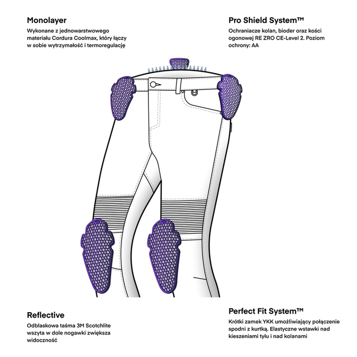 • Możliwość wyjęcia wszystkich ochraniaczy i użytkowania jeansów na co dzień