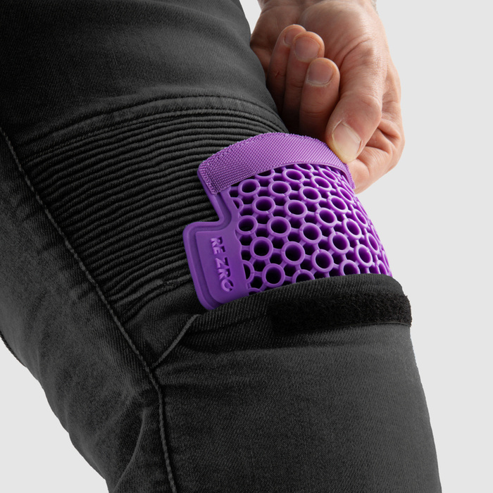 Jeansy Rebelhorn Revolt oferują najwyższy poziom ochrony dzięki biodegradowalnym ochraniaczom RE ZRO® na kolanach, biodrach i kości ogonowej. Jeansy posiadają certyfikację CE i spełniają normy bezpieczeństwa na poziomie AA.