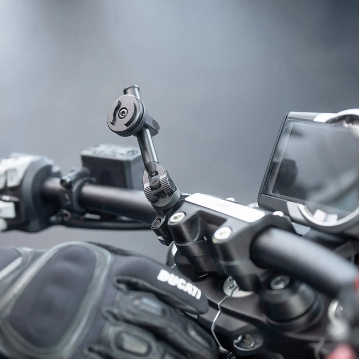 SP Connect Moto Mount 3D 11/2 to idealne rozwiązanie dla motocyklistów z ponadwymiarowymi kierownicami, którzy chcą bezpiecznie i wygodnie zamocować swój smartfon. Dzięki regulowanemu prętowi montażowemu i obrotowemu uchwytowi, łatwo znajdziesz idealne miejsce dla swojego telefonu na motocyklu.
